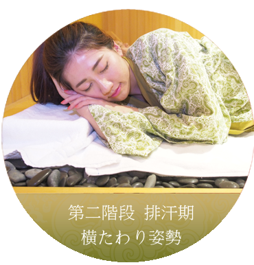 両側のリンパ腺を温め、リンパ線の循環を促進します。汗腺が分泌と調節を開始し、排汗量は10Km程マラソンした後の量に相当します。